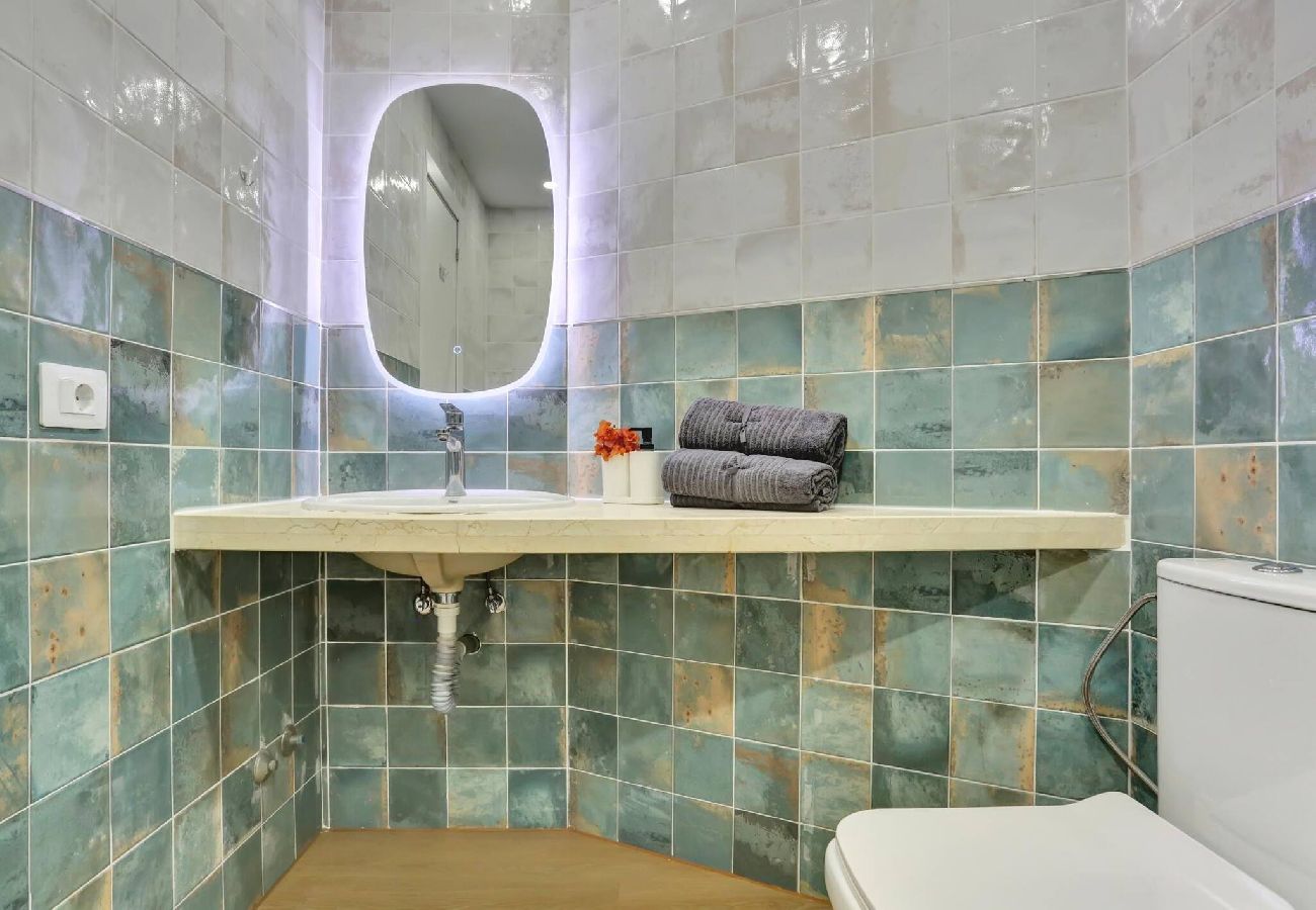 Se compone de una zona independiente con cama de matrimonio, comedor con una preciosa cocina americana equipada con todo lo necesario, zona de relax con sofá cama, TV, aire acondicionado; Baño con ducha y lavadora.