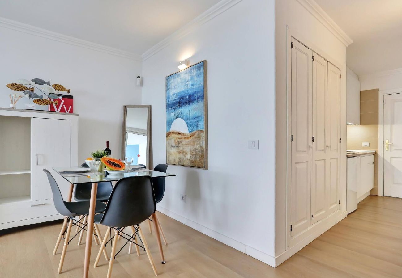Amplio estudio nuevo con zona de dormitorio, con. aire, terraza con zona de relax, Internet rápido, piscina, parking, aire acondicionado