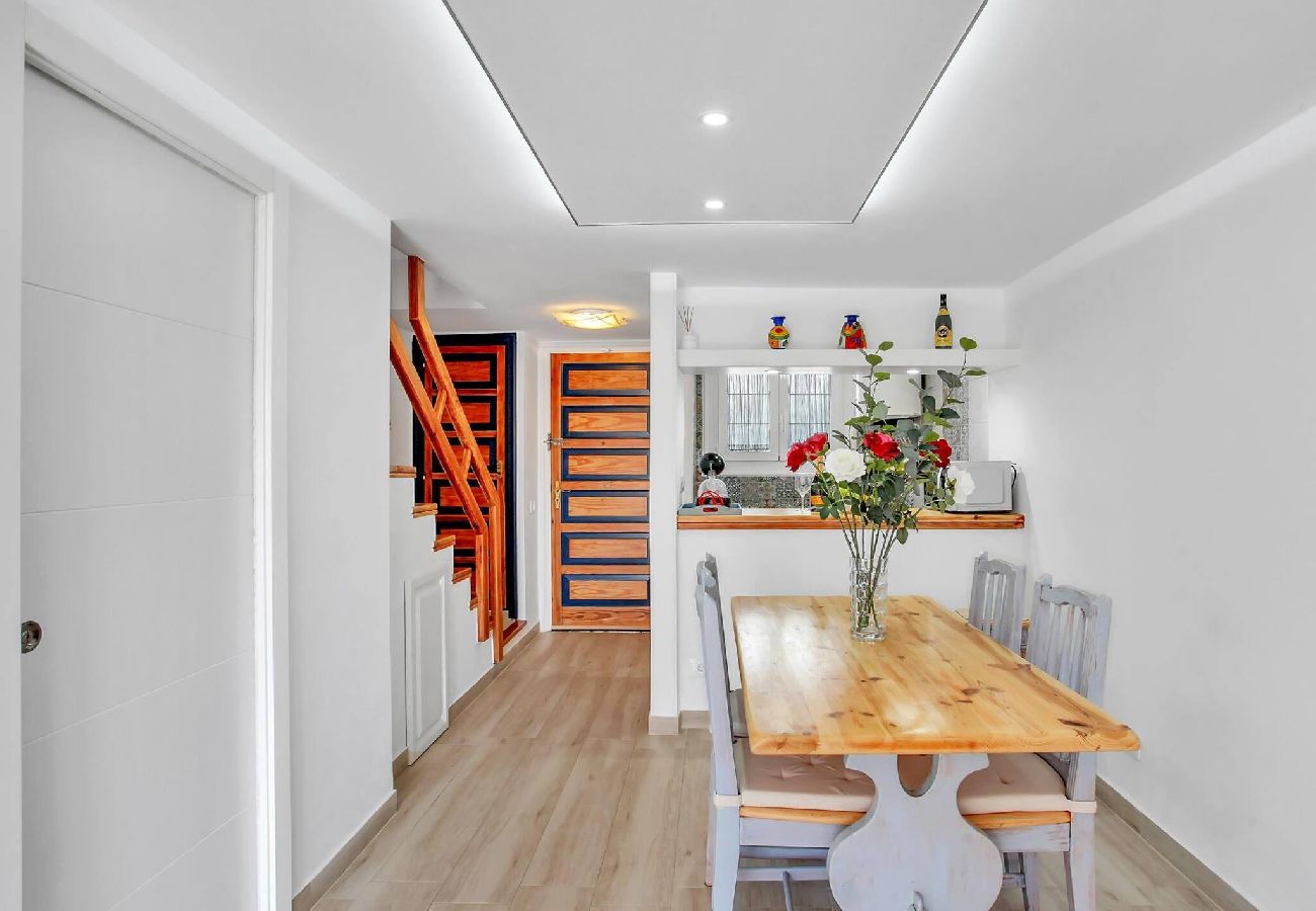 Bellissimo appartamento, duplex, ristrutturato in residence con BELLISSIMA PISCINA a pochi metri dal mare! Terrazza abitabile con tavolo. Immagina di goderti una colazione a temperature canarie in una posizione assolutamente privilegiata e a pochi metri dalle spiagge e da tutto, servizi, parchi a tema... Al piano superiore dispone di letto matrimoniale 160*200 e bagno in suite, mentre al piano principale: soggiorno camera con TV e divano letto, cucina americana completamente attrezzata, macchina da caffè, ecc., bagno e terrazza... WI-FI! Ti aspettano delle vacanze speciali...